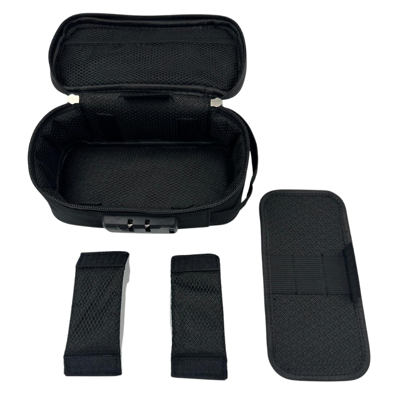 A practical and durable storage case designed for a vaporizer and its accessories. It keeps your equipment organized, protected, and easy to carry wherever you go. The case features a built-in combination lock, allowing you to set your own code for additional security.